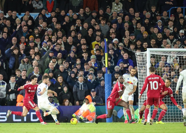 Anton Stach of Leeds United scores to make it 2-2 during the Premier League match Leeds United vs Liverpool at Elland Road, Leeds, United Kingdom, 6th December 2025, Credit:Richard Bierton/News Images / Avalon