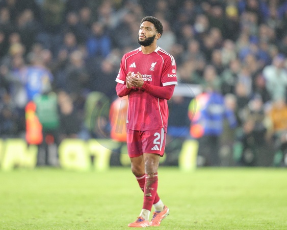 Joe Gomez of Liverpool applauds the fans after the final whistle during the Premier League match Leeds United vs Liverpool at Elland Road, Leeds, United Kingdom, 6th December 2025, Credit:Richard Bierton/News Images / Avalon