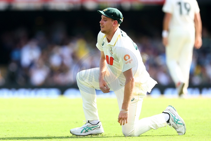 Cameron Green of Australia is seen after dropping a catch during the day 4 of the Second Test in the NRMA Insurance Ashes Series Australia vs England at The Gabba, Brisbane Cricket Ground, Brisbane, Australia, 7th December 2025, Credit:Pat Hoelscher/News Images / Avalon