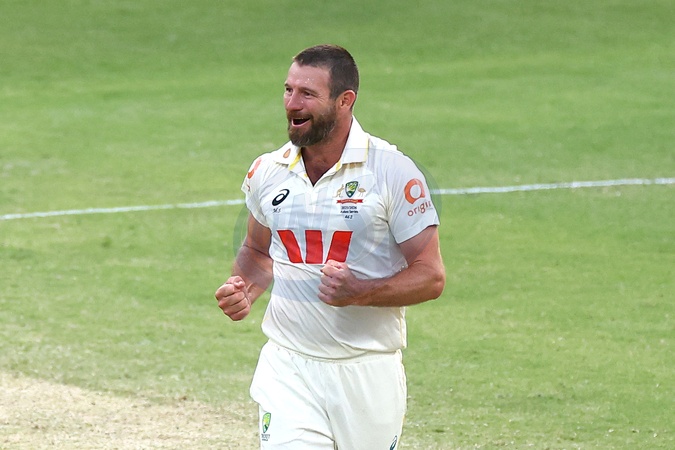Michael Neser of Australia celebrates the dismissal of Ben Stokes of England during the day 4 of the Second Test in the NRMA Insurance Ashes Series Australia vs England at The Gabba, Brisbane Cricket Ground, Brisbane, Australia, 7th December 2025, Credit:Pat Hoelscher/News Images / Avalon