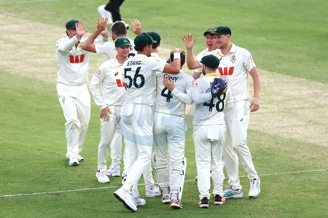 Australia celebrate the dismissal of Ben Stokes of England during the day 4 of the Second Test in the NRMA Insurance Ashes Series Australia vs England at The Gabba, Brisbane Cricket Ground, Brisbane, Australia, 7th December 2025, Credit:Pat Hoelscher/News Images / Avalon