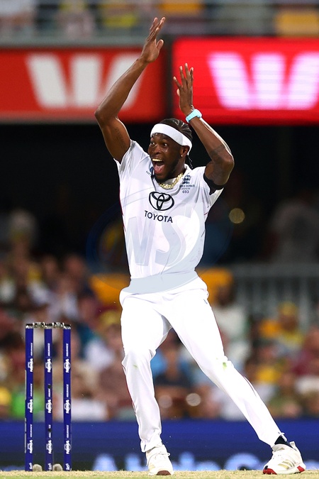 Jofra Archer of England appeals during the day 4 of the Second Test in the NRMA Insurance Ashes Series Australia vs England at The Gabba, Brisbane Cricket Ground, Brisbane, Australia, 7th December 2025, Credit:Pat Hoelscher/News Images / Avalon