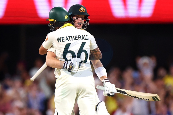 Steve Smith of Australia celebrates Australia winning during the day 4 of the Second Test in the NRMA Insurance Ashes Series Australia vs England at The Gabba, Brisbane Cricket Ground, Brisbane, Australia, 7th December 2025, Credit:Pat Hoelscher/News Images / Avalon