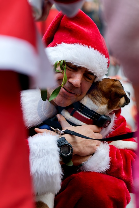 The Santa's Tower Hill met in Tower Hill and Islington followed by a procession through London to Trafalgar Square popping into pubs along the way for vital refreshments., Credit:Aldo Ciarrocchi / Avalon