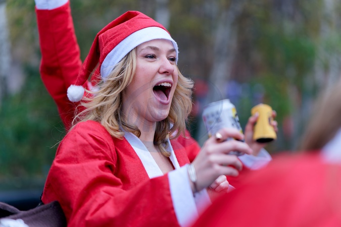 The Santa's Tower Hill met in Tower Hill and Islington followed by a procession through London to Trafalgar Square popping into pubs along the way for vital refreshments., Credit:Aldo Ciarrocchi / Avalon