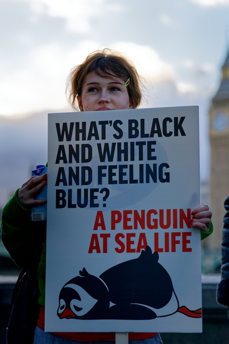 Free the 15 penguins protest. London, 6th December 2025.