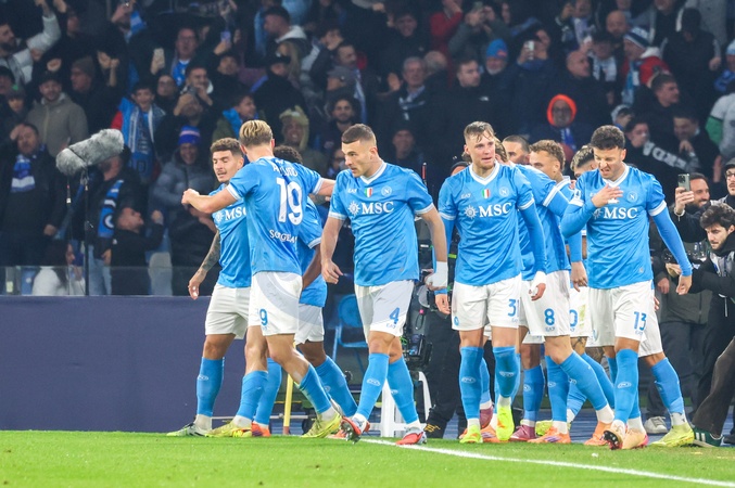 Goal by Rasmus Hoyland of SSC Napoli during the football match of 07/12/2025, valid for the Italian Serie A championship - 2025/26 in Naples at the Stadio Diego Armando Maradona between SSC Napoli vs FC Juventus. Naples, 07 December 2025, Credit:Fabio Sasso / Avalon