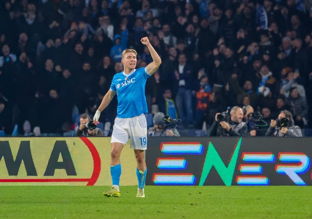 Goal by Rasmus Hoyland of SSC Napoli during the football match of 07/12/2025, valid for the Italian Serie A championship - 2025/26 in Naples at the Stadio Diego Armando Maradona between SSC Napoli vs FC Juventus. Naples, 07 December 2025, Credit:Fabio Sasso / Avalon