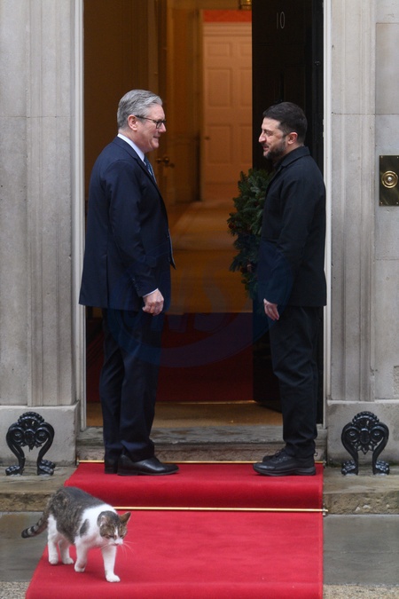 Volodymyr Zelenskyy - President of Ukraine arrives for a Quad-lateral meeting on Ukraine with British Prime Minister Sir Keir Starmer, German Chancellor Friedrich Merz and French President Emmanuel Macron in Downing Street, London, England, UK on Monday 8 December, 2025., Credit:Justin Ng / Avalon