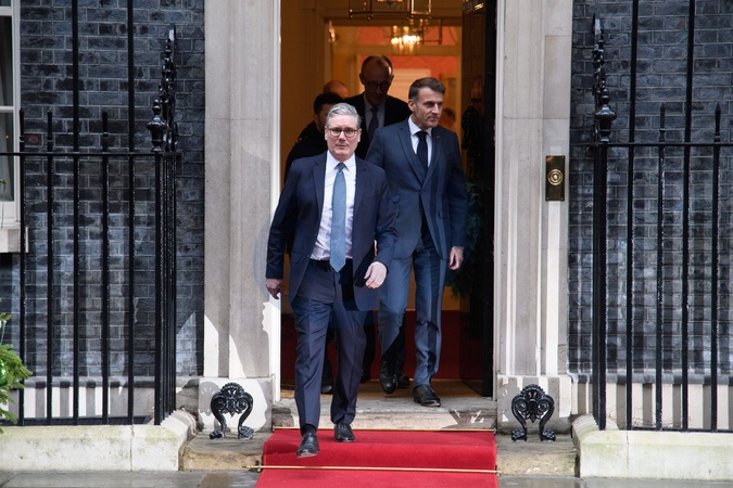 British Prime Minister Sir Keir Starmer bids farewell to French President Emmanuel Macron and German Chancellor Friedrich Merz in Downing Street, London, England, UK on Monday 8 December, 2025., Credit:Justin Ng / Avalon