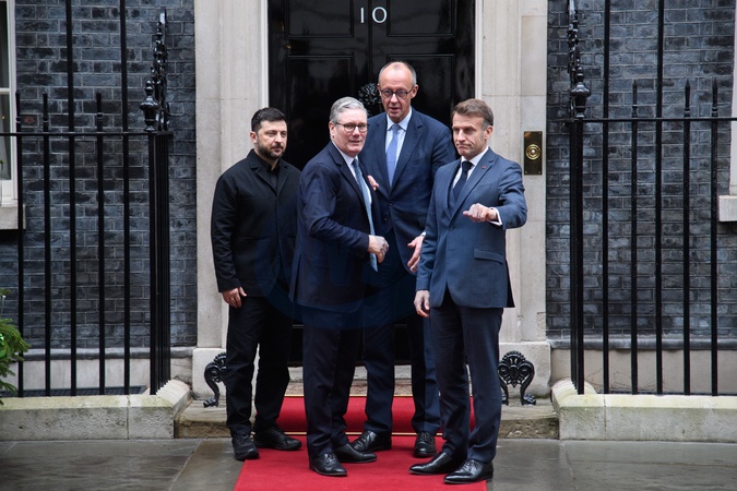 (L-R) - Volodymyr Zelenskyy - President of Ukraine, British Prime Minister Sir Keir Starmer, Friedrich Merz - Chancellor of Germany, Emmanuel Macron - President of France in Downing Street, London, England, UK on Monday 8 December, 2025., Credit:Justin Ng / Avalon