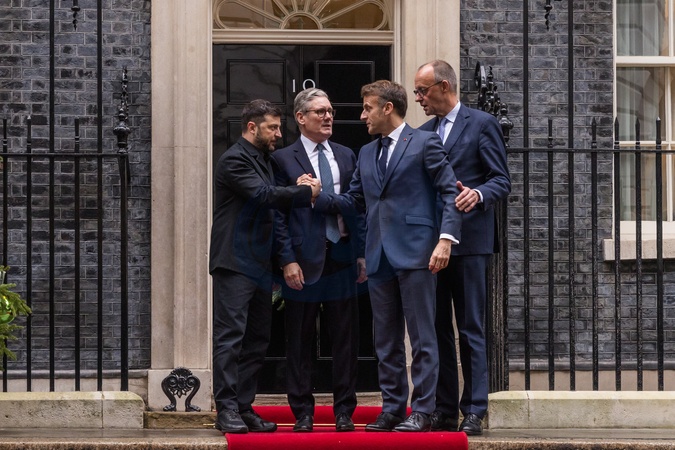 British Prime Minister, Keir Starmer, welcomes Zelenskyy, Macron and Merz to Downing St, London, UK.