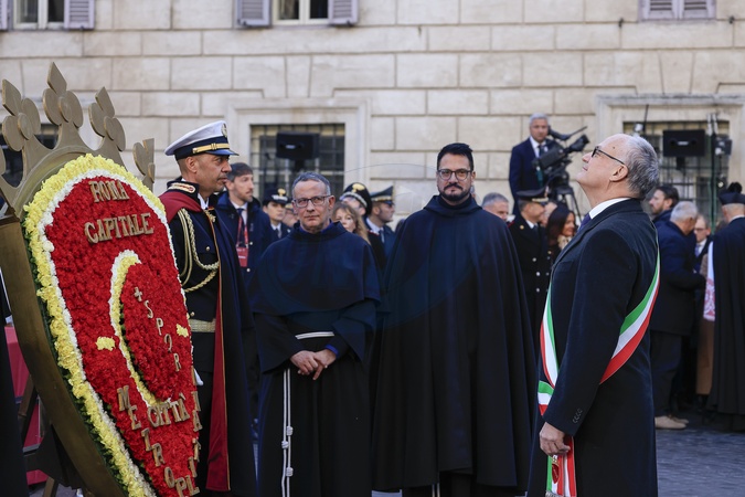 Feast of the Immaculate Conception of Mary, ceremony in Piazza Mignanelli, near the Spanish Steps. Pictured: Roberto Gualtieri. Rome, Italy 08 December 2025, Credit:Richard De Luca / Avalon
