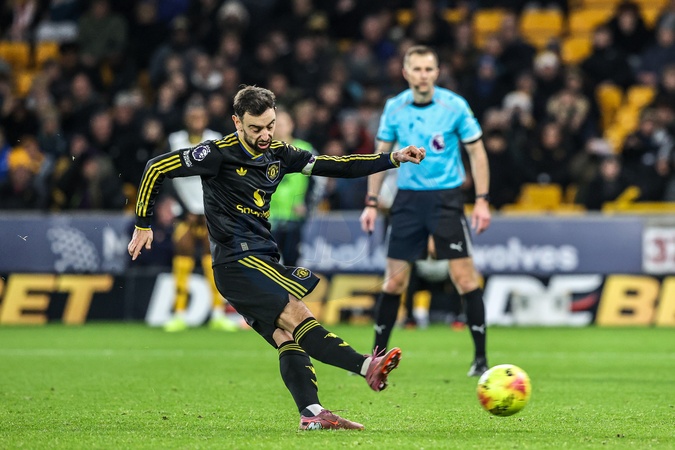 Bruno Fernandes of Manchester Untied scores a penalty to make it 1-4 during the Premier League match Wolverhampton Wanderers vs Manchester United at Molineux, Wolverhampton, United Kingdom, 8th December 2025, Credit:Ae Cosgrove/News Images / Avalon