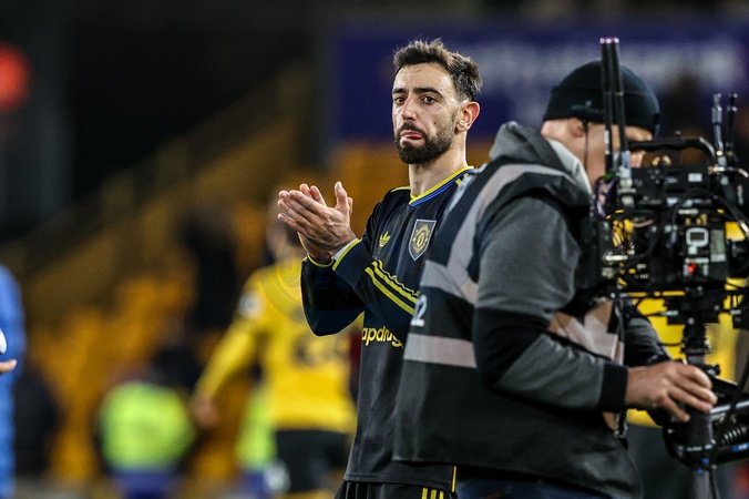 Bruno Fernandes of Manchester Untied applauds the fans after the game during the Premier League match Wolverhampton Wanderers vs Manchester United at Molineux, Wolverhampton, United Kingdom, 8th December 2025, Credit:Ae Cosgrove/News Images / Avalon