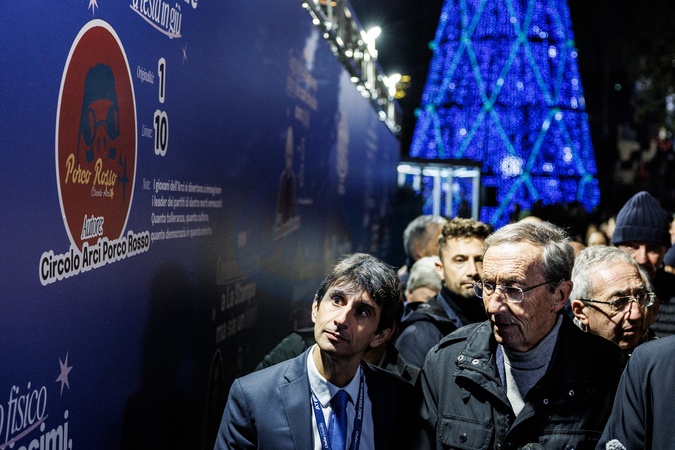 08/12/2025 Rome, Atreju 2025 Brothers of Italy party at Castel Sant'Angelo, pictured Giovanni Donzelli and Gianfranco Fini, Credit:Francesco Fotia / Avalon