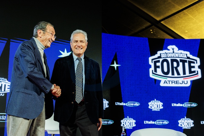 08/12/2025 Rome, Atreju 2025 Brothers of Italy party at Castel Sant'Angelo, pictured Gianfranco Fini and Francesco Rutelli, Credit:Francesco Fotia / Avalon