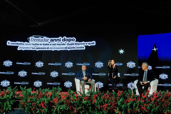 08/12/2025 Rome, Atreju 2025 Brothers of Italy party at Castel Sant'Angelo, pictured Gianfranco Fini and Francesco Rutelli, Credit:Francesco Fotia / Avalon