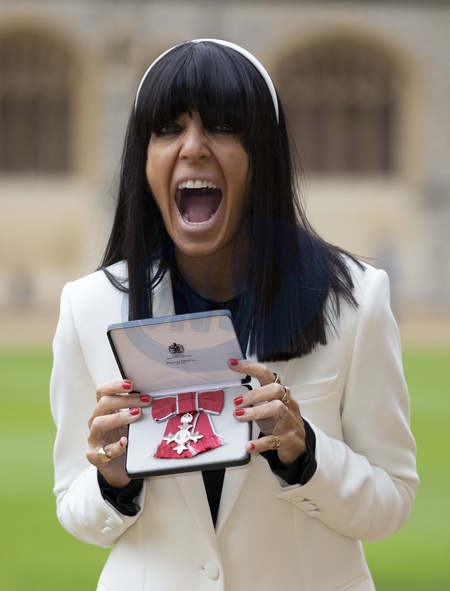 Image Licensed to i-Images Picture Agency. 09/12/2025. Windsor , United Kingdom. TV presenter Claudia Winkleman with her MBE after an Investiture at Windsor Castle, United Kingdom., Credit:Stephen Lock / i-Images / Avalon