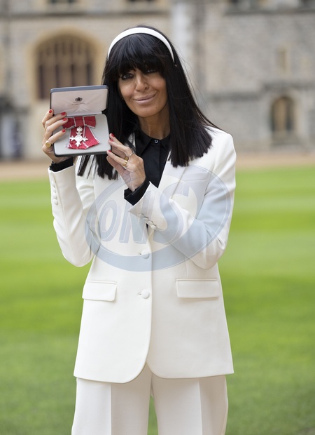 Image Licensed to i-Images Picture Agency. 09/12/2025. Windsor , United Kingdom. TV presenter Claudia Winkleman with her MBE after an Investiture at Windsor Castle, United Kingdom., Credit:Stephen Lock / i-Images / Avalon