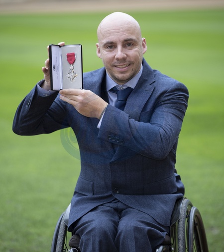 Image Licensed to i-Images Picture Agency. 09/12/2025. Windsor , United Kingdom. Andy Lapthorne with his MBE after an Investiture at Windsor Castle, United Kingdom., Credit:Stephen Lock / i-Images / Avalon