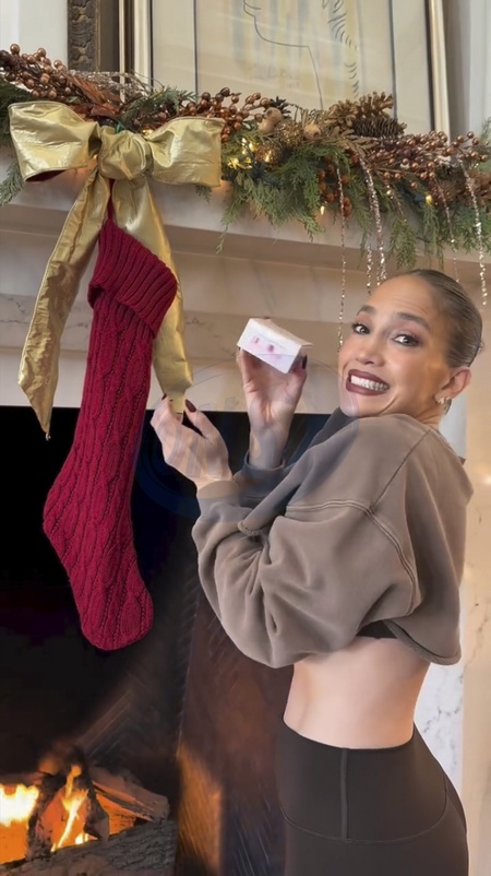 Screenshot of Jennifer Lopez, latest post on social media, 9th December 2025.Quote:"Glow gifts for the ones I love. @jlobeauty Stocking Stuffers.", Credit:B4859 / Avalon