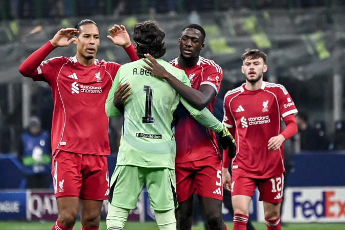 San Siro Stadium. Champions League. League phase, Matchday 6. Inter vs. Liverpool. Liverpool celebrates at the end of the match. . Milan, Italy 09 december 2025, Credit:Nicola Marfisi / Avalon