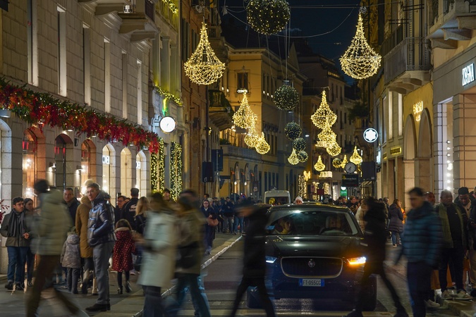 Christmas lights turned on. Pictured is the shop window on Via Monte Napoleone. Milan, Italy 06 december 2025, Credit:Selene Daniele / Avalon