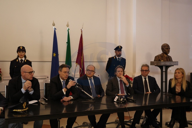 Press conference by the Palermo Flying Squad on the investigations that led to the issuance of 50 precautionary measures for drug trafficking and extortion. Palermo, Italy 10 December 2025, Credit:Christian Bonaviri / Avalon