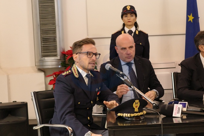 Press conference by the Palermo Flying Squad on the investigations that led to the issuance of 50 precautionary measures for drug trafficking and extortion. Pictured is Carlo Nicotra, director of the Brancaccio Police Station. Palermo, Italy 10 December 2025, Credit:Christian Bonaviri / Avalon