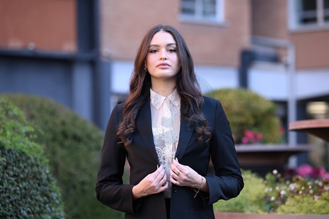 RaiPlay, presentation of Tutta scena, a coming-of-age series that follows ten young aspiring actors and performers. Pictured is Alice Maselli wearing a Gattinoni dress. Rome, Dec 10th 2025, Credit:Maria Laura Antonelli / Avalon
