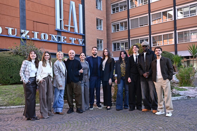 RaiPlay, presentation of Tutta scena, a coming-of-age series that follows ten young aspiring actors and performers. Pictured: director Nicola Conversa and the cast, including Giorgio Panariello, Euridice Axen, Sabrina Martina, Seydou Sarr, Anna Favella, Arianna Mattioli, Alice Maselli, Margherita Morchio, Emanuele Porzio, and Giovanni Scotti. Rome, Dec 10th 2025, Credit:Maria Laura Antonelli / Avalon