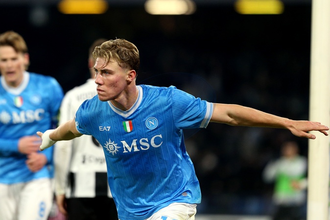 December 7, 2025, Naples. Serie A 2025/26 football championship, SSC Napoli-Juventus FC - Pictured: Rasmus Hojlund celebrates after scoring (SSC Napoli)., Credit:Marco Canoniero / Avalon