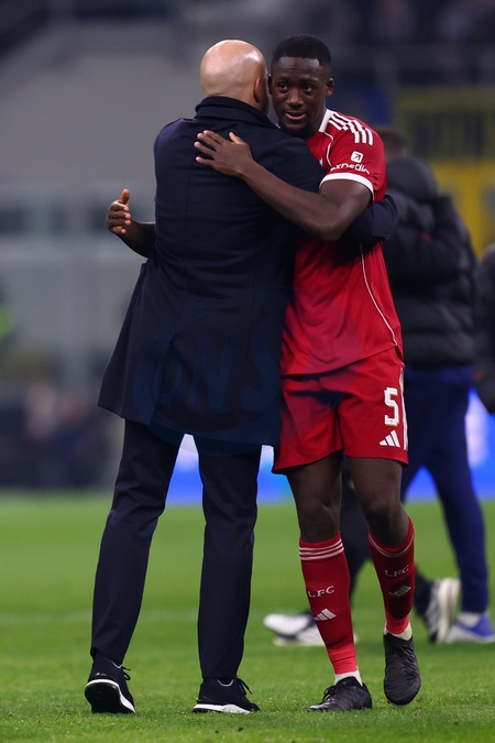 December 9, 2025, Milan. UEFA Champions League 2025/26 MD6 - FC Internazionale vs. Liverpool FC - Pictured: Arne Slot and Ibrahima Konate, Credit:Marco Canoniero / Avalon