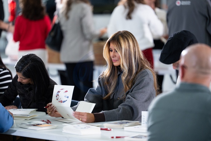 First Lady Melania Trump and Second Lady Usha Vance join the American Red Cross to deliver holiday care packages to military spouses
