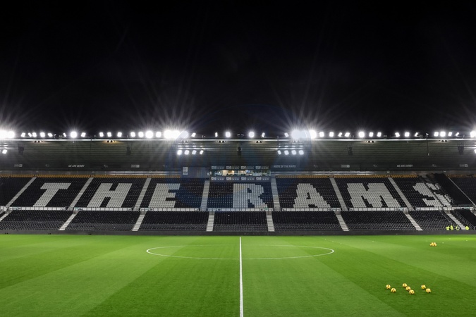 A general view of Pride Park under the lights during the Sky Bet Championship match Derby County vs Millwall at Pride Park Stadium, Derby, United Kingdom, 10th December 2025, Credit:Mark Cosgrove/News Images / Avalon