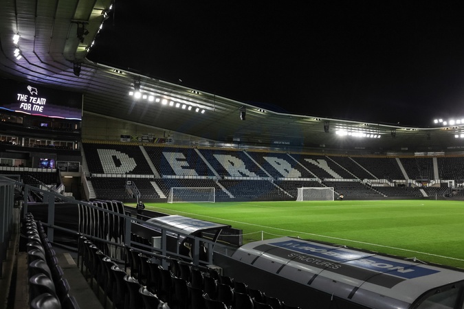 A general view of Pride Park under the lights during the Sky Bet Championship match Derby County vs Millwall at Pride Park Stadium, Derby, United Kingdom, 10th December 2025, Credit:Mark Cosgrove/News Images / Avalon