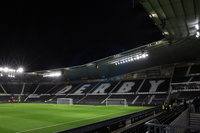 A general view of Pride Park under the lights during the Sky Bet Championship match Derby County vs Millwall at Pride Park Stadium, Derby, United Kingdom, 10th December 2025, Credit:Mark Cosgrove/News Images / Avalon