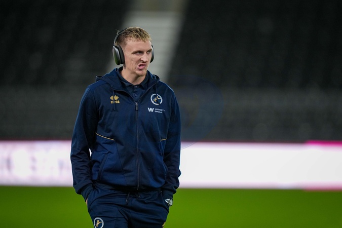 Alfie Doughty of Millwall inspects the pitch during the Sky Bet Championship match Derby County vs Millwall at Pride Park Stadium, Derby, United Kingdom, 10th December 2025, Credit:Maynard Manyowa/News Images / Avalon