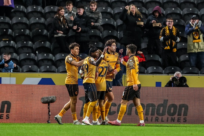 Kyle Joseph of Hull City celebrates his goal to make it 1-0 during the Sky Bet Championship match Hull City vs Wrexham at MKM Stadium, Hull, United Kingdom, 10th December 2025, Credit:Ae Cosgrove/News Images / Avalon