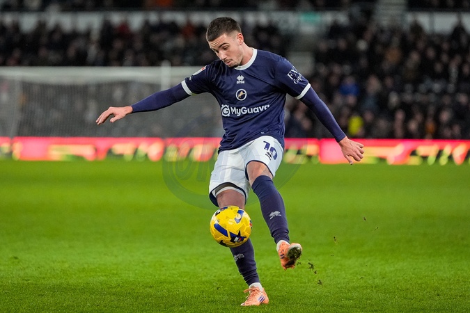 Camiel Neghli of Millwall controls the ball during the Sky Bet Championship match Derby County vs Millwall at Pride Park Stadium, Derby, United Kingdom, 10th December 2025, Credit:Maynard Manyowa/News Images / Avalon