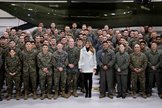 Melania Trump visits Marine Corps Base Quantico for a Toys for Tots Christmas event
