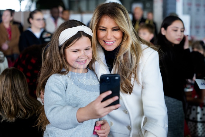First Lady Melania Trump participates in a Toys for Tots Christmas event at Marine Corps Base Quantico, Monday, December 8, 2025., Credit:Andrea Hanks / Avalon