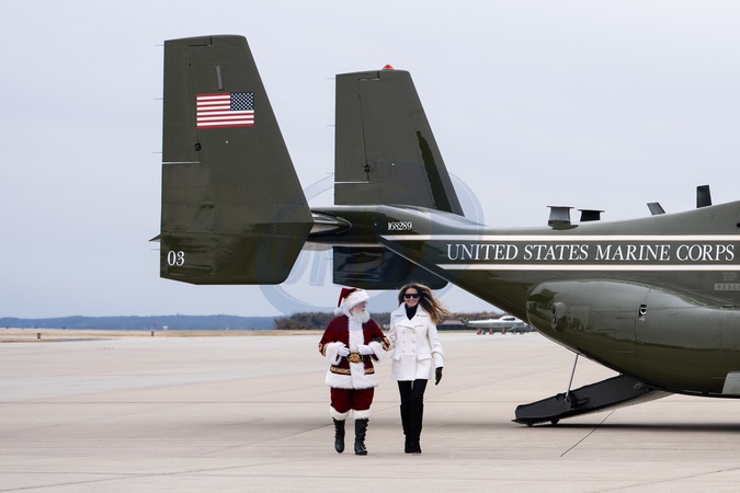 Melania Trump visits Marine Corps Base Quantico for a Toys for Tots Christmas event