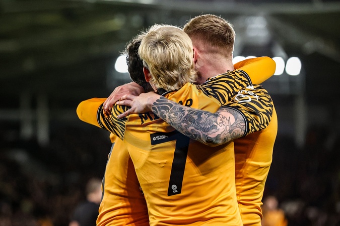 Oliver McBurnie of Hull City celebrates his goal to make it 2-0 during the Sky Bet Championship match Hull City vs Wrexham at MKM Stadium, Hull, United Kingdom, 10th December 2025, Credit:Ae Cosgrove/News Images / Avalon