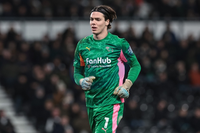 Derby County goalkeeper Jacob Widell Zetterstrom during the Sky Bet Championship match Derby County vs Millwall at Pride Park Stadium, Derby, United Kingdom, 10th December 2025, Credit:Mark Cosgrove/News Images / Avalon