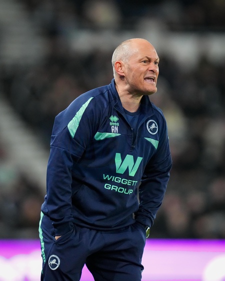 Alex Neil manager of Millwall shouts instructions to his team during the Sky Bet Championship match Derby County vs Millwall at Pride Park Stadium, Derby, United Kingdom, 10th December 2025, Credit:Maynard Manyowa/News Images / Avalon