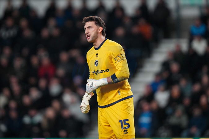 Millwall goalkeeper Max Crocombe encourages his team mates during the Sky Bet Championship match Derby County vs Millwall at Pride Park Stadium, Derby, United Kingdom, 10th December 2025, Credit:Maynard Manyowa/News Images / Avalon