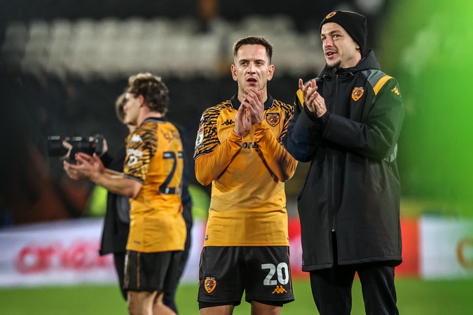 Amir Hadziahmetovic of Hull City applauds the fans after the game during the Sky Bet Championship match Hull City vs Wrexham at MKM Stadium, Hull, United Kingdom, 10th December 2025, Credit:Ae Cosgrove/News Images / Avalon