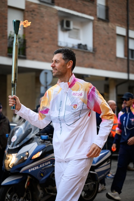 The Olympic Torch passes through Pontedera, the city of motors for the Milan Cortina 2026 Winter Olympics . Pontedera, Italy 11 December 2025, Credit:Stefano Dalle Luche / Avalon